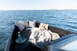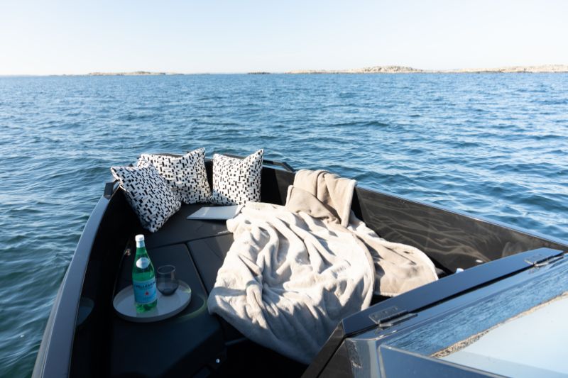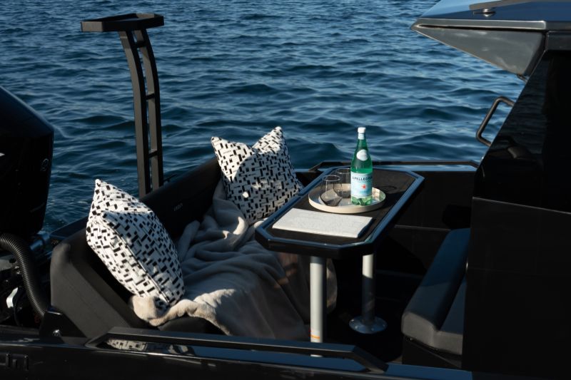 Coupéns infällbara tak och skjutdörrar tar in naturen och skapar en öppen, luftig atmosfär. För avkoppling kan en solsäng placeras i fören, medan akterdäcket har en soffa och ett bord med plats för upp till 5 personer för middag och umgänge. Den slutna hytten garanterar komfort i olika väderförhållanden.