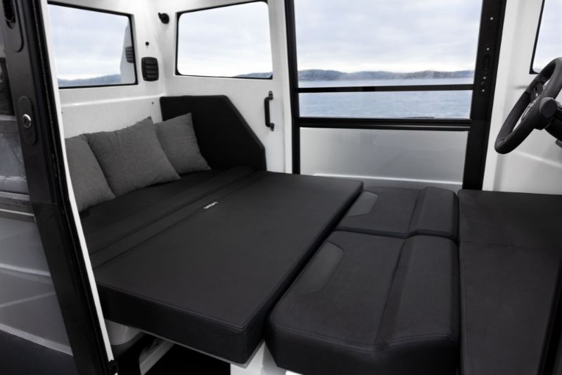 Hytten på IRON 827 Coupé är utformad för att anpassas till dina behov. Den kan enkelt omvandlas till en sovplats, perfekt för övernattningar på vattnet.
