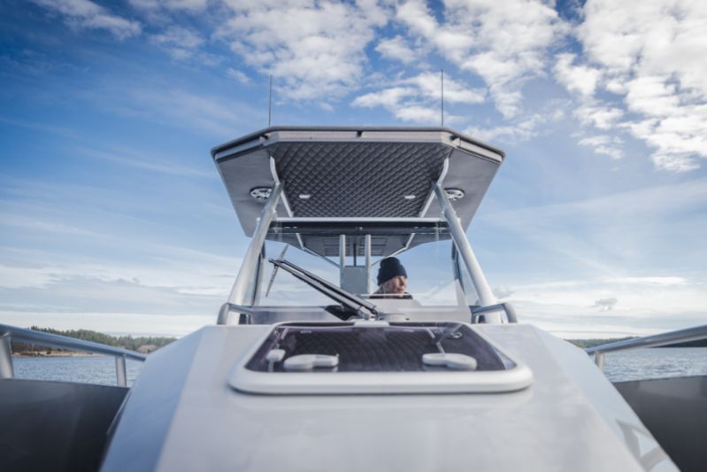 När det gäller Anytec är prestandan också en fröjd i praktiken, eftersom köregenskaperna och förarplats är sådana att du kan bibehålla hastigheten utan att offra komforten, även i avsevärt tufft väder. I kategorin båtar under 10 meter är Anytec 860 T definitivt en av de snabbaste vattenfarkosterna. I 860 T har Anytec djärvt kombinerat en heltäckande aluminiumkonstruktion med den trendiga T-top-lösningen för walk-around-utrymmen.