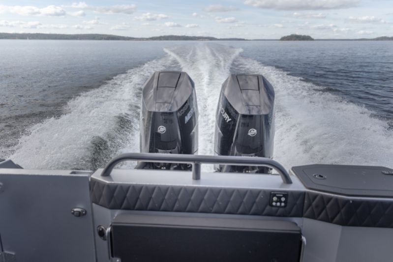 Toppfarten stiger lätt till över 60 knop. Den välkalibrerade Mercury Active Trim hittar toppfarten bra, men för att pressa den till dess yttersta, trimma 860 T manuellt. Då är körningen lätt och körkänslan spännande sportig. Även om motortrimmet är på max och skrovet mestadels är ur vattnet, går 860 T stadigt även i toppfart. Sidostabiliteten är särskilt god, och 860 T börjar inte wobbla ens när man provocerar den.