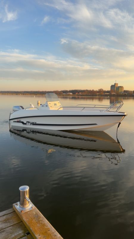 Denna nya länge efterlängtade båtmodell är äntligen lanserad – ett resultat av lång utveckling och höga ambitioner. Med sjöegenskaper överlägsen likvärdiga båtar, imponerande stabilitet och följsam gång levererar den en trygg men samtidigt förnöjsam upplevelse. Den moderna designen och genomtänkta helheten gör båten lika rolig att köra som behaglig att vistas i. Mycket båtglädje för pengen.